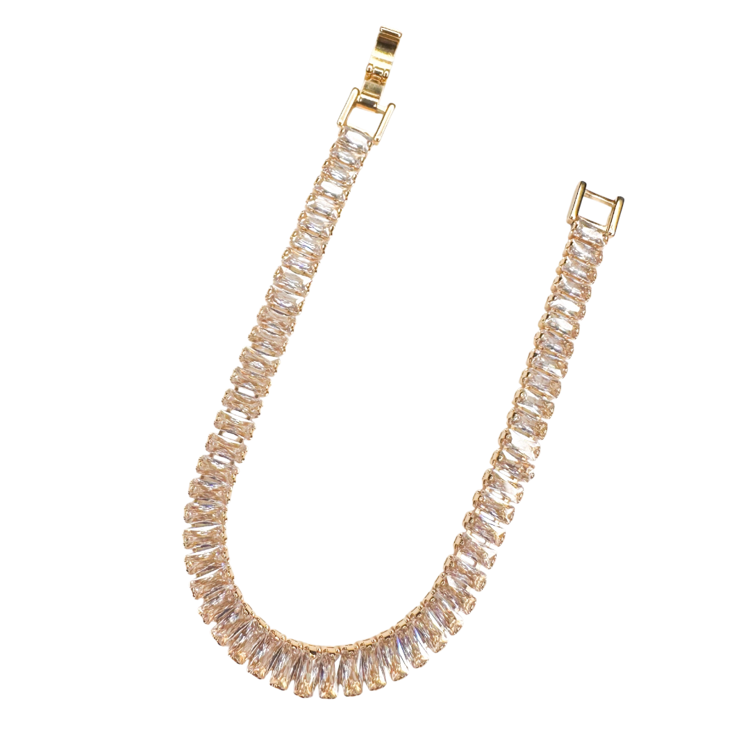 Conheça nossa deslumbrante pulseira com baguetes em zircônias cristal, que combina sofisticação e brilho incomparável. Esta peça elegante é perfeita para adicionar um toque de glamour a qualquer look, seja para o dia a dia ou ocasiões especiais. Com um design delicado, a pulseira é um acessório essencial que realça a beleza e a confiança.